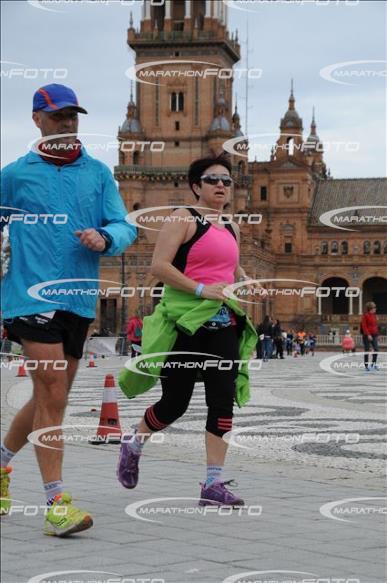 Kilómetro 36. Reyes va aumentando el ritmo poco a poco. Realmente no paramos de adelantar a gente desde hace 20 kilómetros, hasta este momento no hemos aumentando el ritmo, pero seguimos al mismo ritmo de salida. Todos los kms entre 6:30 y 6:40. Le digo a Reyes que llevamos un ritmo muy bueno, estamos en la Plaza de España y nos vamos para el centro de Sevilla, seguimos aumentando el ritmo.
